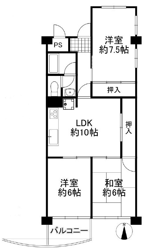 | 間取り詳細 | 洋7.5帖/洋6帖/和6帖/LDK10帖 |