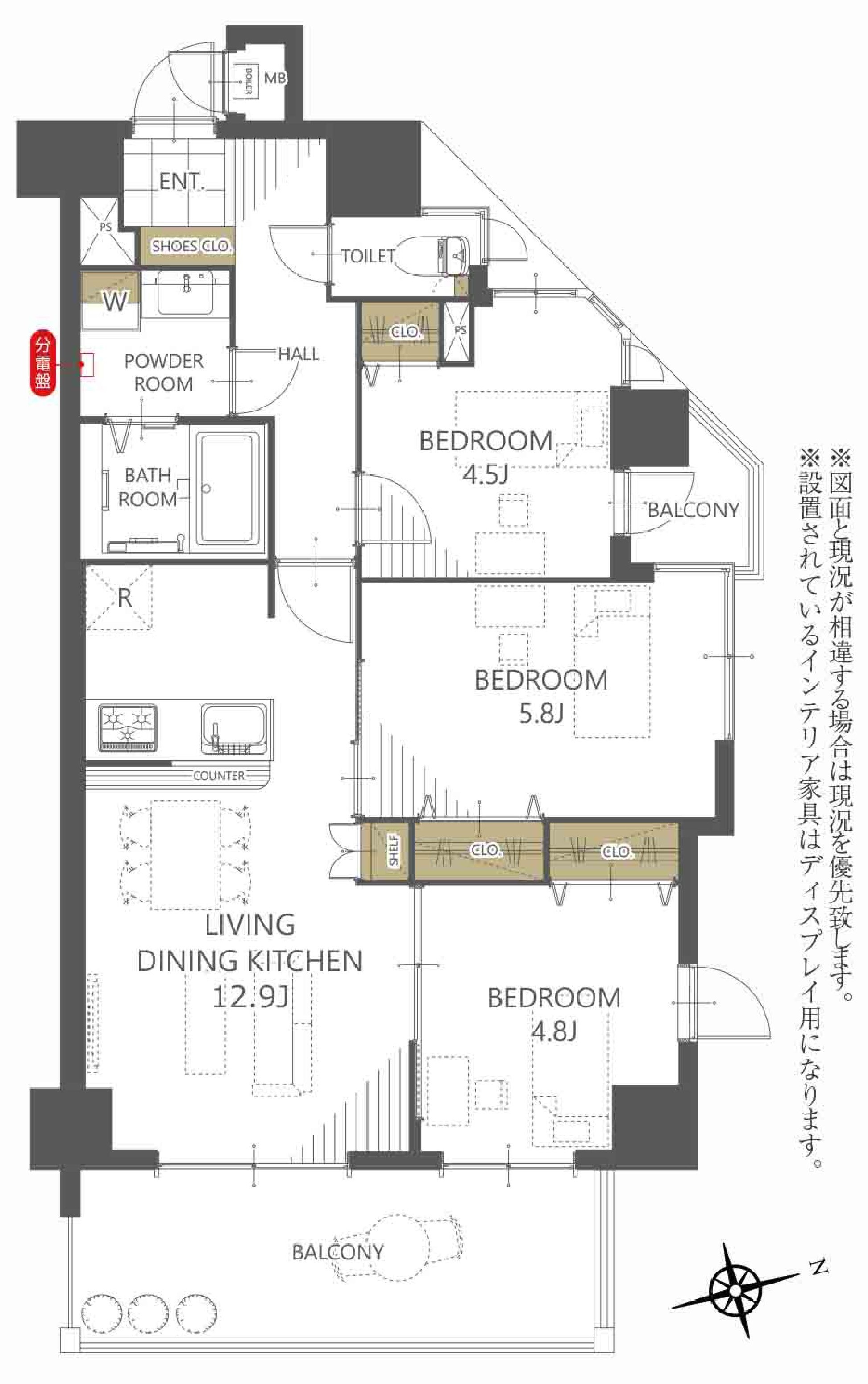 | 間取り詳細 | 洋5.8帖/洋4.8帖/洋4.5帖/LDK12.9帖 |
