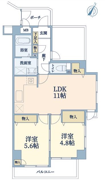 | 間取り詳細 | 洋5.6帖/洋4.8帖/LDK11帖 |