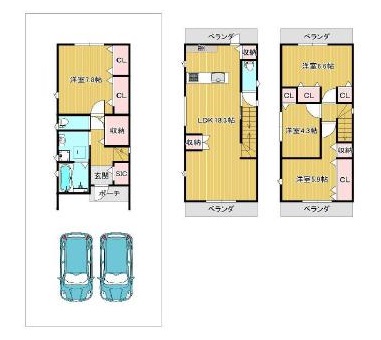 | 間取り詳細 | 洋7.8帖/洋5.9帖/洋5.5帖/洋4.3帖/LDK18.1帖 |