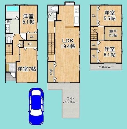 | 間取り詳細 | 洋7帖/洋6.1帖/洋5.5帖/洋5.1帖/S2.3帖/LDK19.4帖 |
