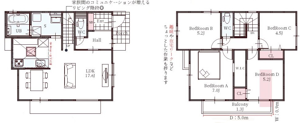 | 間取り詳細 | 洋7帖/洋5.2帖/洋5.2帖/洋4.5帖/LDK17.6帖 |