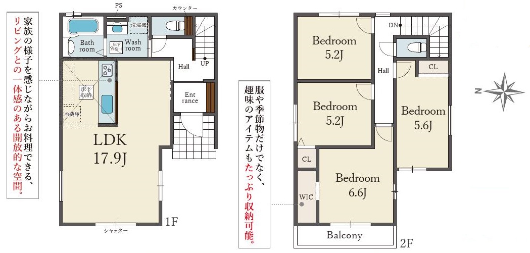 | 間取り詳細 | 洋6.6帖/洋5.6帖/洋5.2帖/洋5.2帖/LDK17.9帖 |