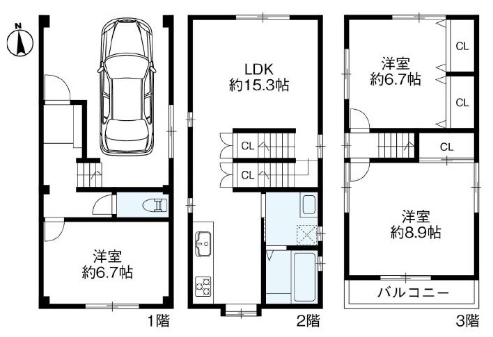 | 間取り詳細 | 洋8.9帖/洋6.7帖/洋6.7帖/LDK15.3帖 |
