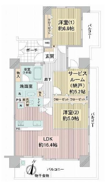 | 間取り詳細 | 洋6.6帖/洋5帖/S5.2帖/LDK16.4帖 |