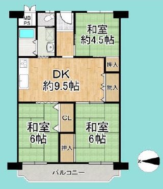 | 間取り詳細 | 和6帖/和6帖/和4.5帖/DK9.5帖 |